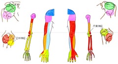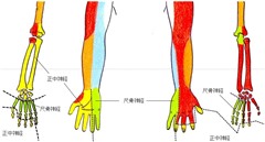 図が小さいうえ、印刷の影響で尺骨神経と正中神経の色がわかりにくくなってしまいました。